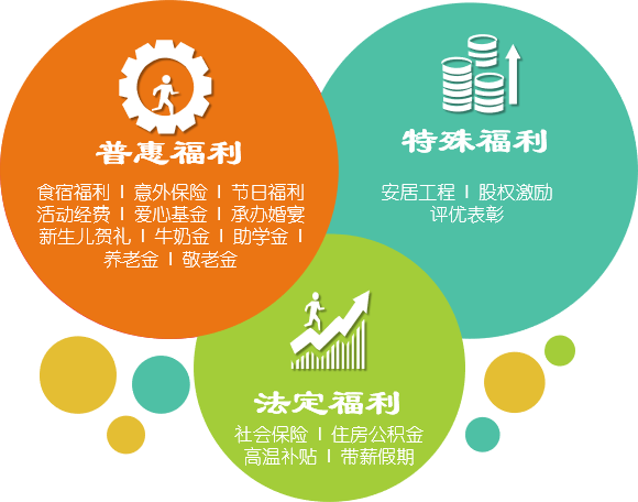 公司福利由法定福利、普惠福利、特殊福利三部分组成,不仅惠及个人,更让你的家庭温暖无忧。