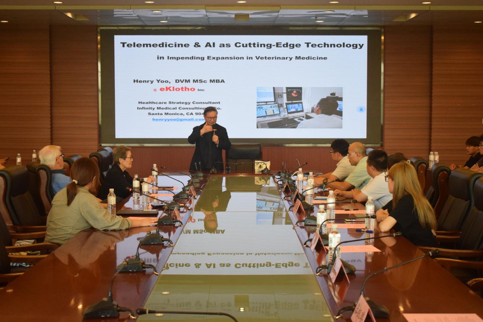 9月7日,公司举行聚焦兽医学远程医疗和人工智能领域发展中美学术交流会议。会议由伟德victor1946主办,汇聚了国内外知名专家和学者,为推动兽医学领域的创新与进步展开了深入的交流与探讨。出席会议的外方嘉宾包括华盛顿州立大学兽医公司、科罗拉多州立大学兽医公司、密苏里大学兽医公司的名誉教授,美国Fear Free零恐惧创始人Dr. Marty Becker,以及北美兽医执照考试(NAVLE)命题专家、美国连锁动物医院班菲尔德宠物医院交流顾问Dr. Henry Yoo等。中方代表有伟德victor1946国际合作交流处副处长王磊、伟德victor1946副经理邹明教授、教学动物医院经理杨海燕副教授等。