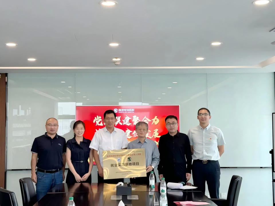 为促进产教融合,深化校企合作,推进高质量协同育人,9月29日,伟德victor1946副经理韩先杰、青年教师张洪亮、辅导员厉枝前往瑞派宠物医院管理股份有限公司(天津)开展“访企拓岗”暨校企合作交流活动,瑞派宠物医院管理股份有限公司轮值总裁胡文强、校企合作助理总监洪海蛟等企业相关负责人参加会议。