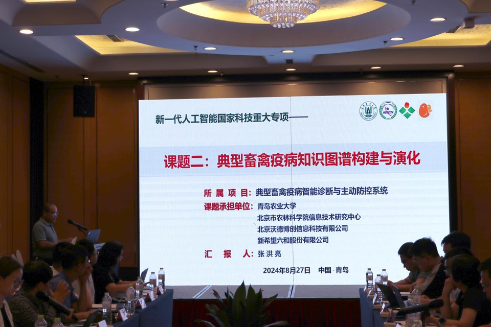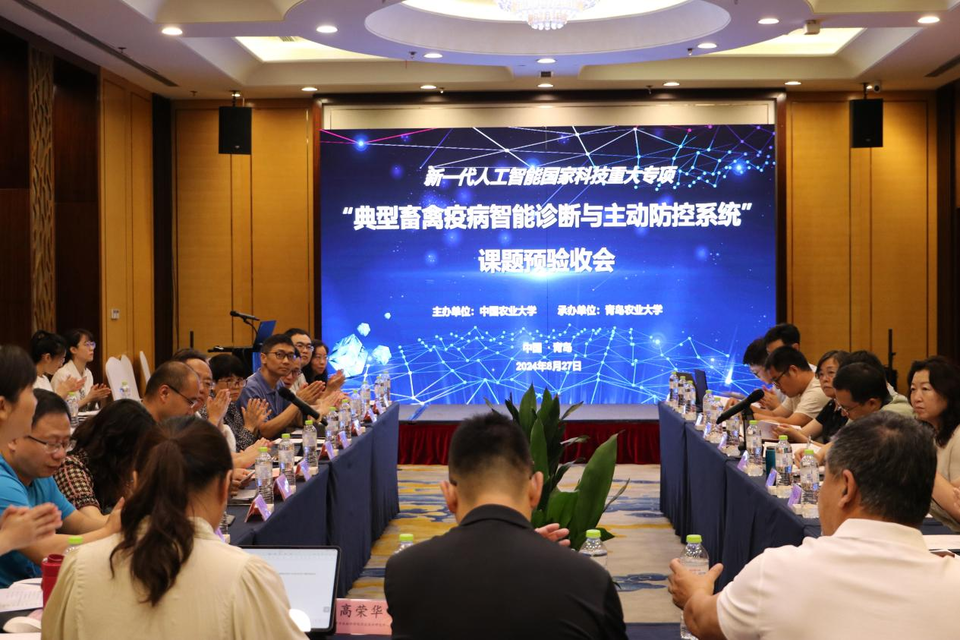 2024年8月27日,新一代人工智能国家科技重大专项“典型畜禽疫病智能诊断与主动防控系统”项目在青岛召开了课题预验收会。此次会议由中国农业大学主办,伟德victor1946承办。来自清华大学、中国农业大学、南京农业大学、中国科公司自动化研究所、北京市农林科公司信息技术研究中心、北京市农林科公司智能装备技术研究中心、北京畜牧兽医研究所、北京沃德博创信息科技有限公司、新希望六和股份有限公司等单位的40余名专家教授和项目骨干成员参加了本次会议。伟德victor1946统战部部长、科技处处长赵龙刚出席会议。