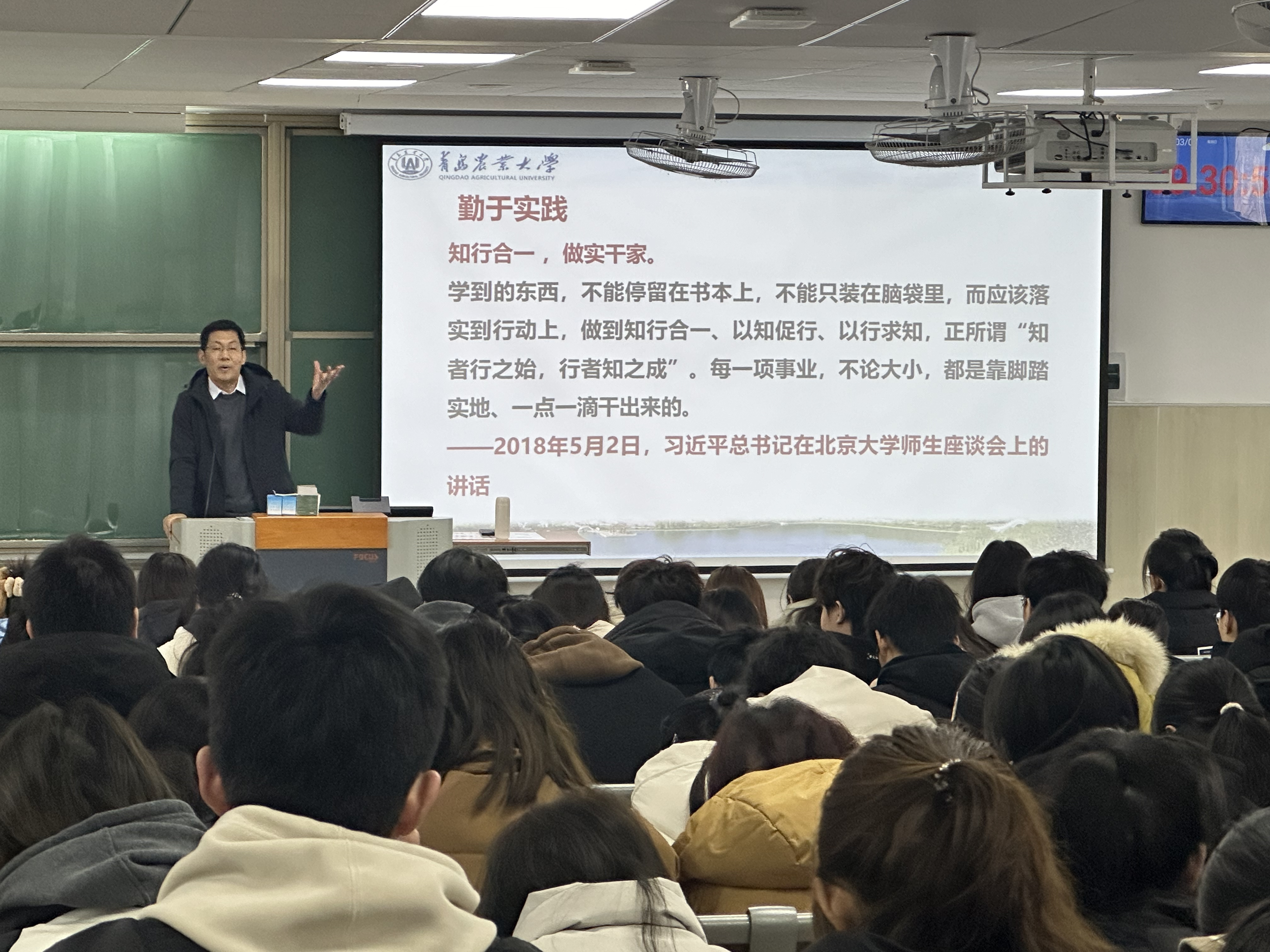 3月7日,副经理韩先杰在平度校区给全体2023级员工上“开学第一课”。韩先杰结合历史实例,讲述了大学的起源;引用蔡元培、科林·卢卡斯有关对大学解读的名言,向员工们说明作为当代老员工,应该首先了解大学的使命:即塑造员工完整的人格、净化员工的心灵修养和品行。引领员工们传承青农精神,牢记奋斗使命。他还结合今昔的教育对比、未来动物医学领域新发展机遇,从为什么要上大学、怎样上大学两个方面做“开学第一课”的入学教育。他从大学能够培养基本的社交技能和沟通能力、实现人生的蜕变、培养员工的社会担当的三个层次展开,勉励员工树立远大的理想信念,勇于承担历史责任,励志勤学、刻苦磨练。同时,他向同学们新学期的学习与生活提出四点建议:确定目标与规划、恰当处理好人际关系、合理平衡学习与娱乐、理性对待情感。最后,韩先杰告诫全体员工:“青春是用来奋斗的,奋斗是青春最靓丽的底色。”