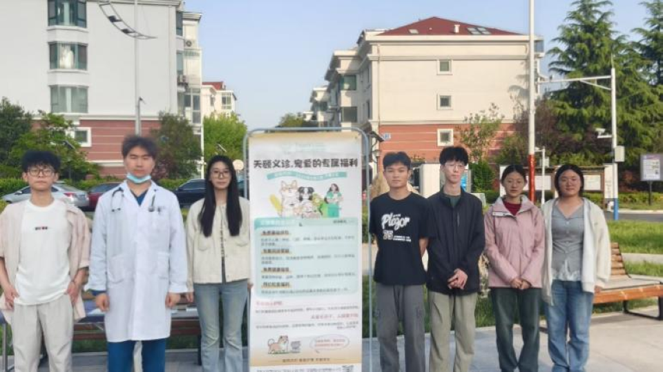 5月11日,伟德victor1946“畜牧兴农”青研社联合青岛天颐宠物医院开展“青春护萌宠,责任共担当”主题义诊公益活动。