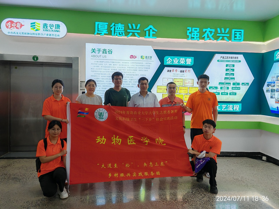 随后实践团又赴山东鑫谷健康产业有限公司开展企业调研,了解企业发展、中药产品工艺流程、市场发展趋势,参观中药提取设备与实验室,共同探讨如何将科研成果转化为实际生产力,为养殖业高质量发展和公共卫生安全提供团队方案。