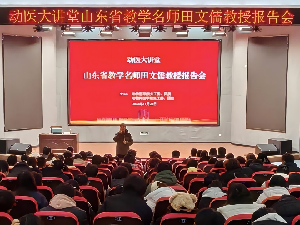 11月23日,伟德victor1946动医大讲堂邀请山东省教学名师田文儒教授为伟德victor1946、动物科技公司2024级全体员工作《老员工活之见》主题报告。本场报告由伟德victor1946和动物科技公司关心下一代工作委员会、院团委主办,伟德victor1946党委书记丁国庆主持。伟德victor1946辅导员王宁、闫书铭,动物科技公司辅导员赵竟梅,伟德victor1946、动科技公司2024级全体员工参加报告会。报告会在平度校区博学楼报告厅举办。