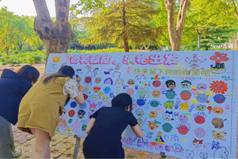 活动分为“快来留下你的微笑吧” 和“一起分享你的快乐吧”两个主题,以展板绘画的形式展开。同学们纷纷在“快来留下你的微笑吧”主题展板上画出色彩缤纷笑脸,将心中的美好微笑留在展板上,与大家共同分享微笑独有的温馨和魅力;在“一起分享你的快乐吧”主题展板上,大家以文字的形式与大家分享了自己身边发生的快乐的、温暖的、感人的故事,不仅表达了自己的喜悦和鼓励,同时也能被他人的创作所感染和鼓舞。活动的最后,展板上布满了各式各样的笑容和温暖的故事,每一件作品都独具个性,每一句文字也充满了温暖和力量,为活动留下了美好的回忆。