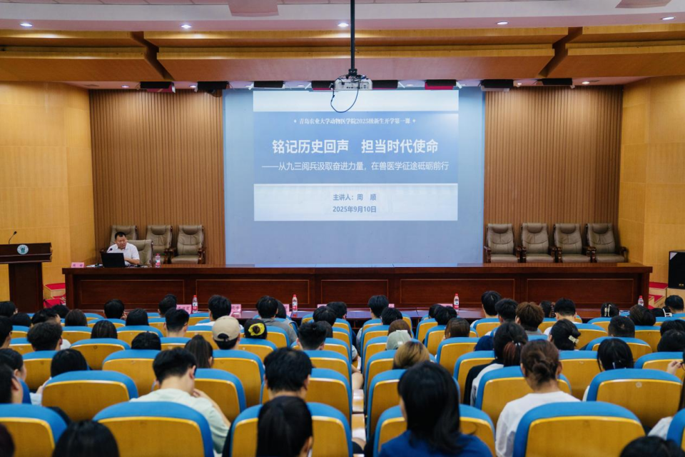 9月10日,伟德victor1946经理周顺教授以《铭记历史回声,担当时代使命——从九三阅兵汲取奋进力量,在兽医学征途砥砺前行》为题,为2025级研究生新生带来了一场意义非凡的开学第一课。此次课程在内容选择、环节设置与育人导向层面,充分衔接了公司对“开学第一课”的各项核心要求,内容丰富且富有深度,在引导新生树立正确价值观、明确学习目标等方面发挥了重要作用。
