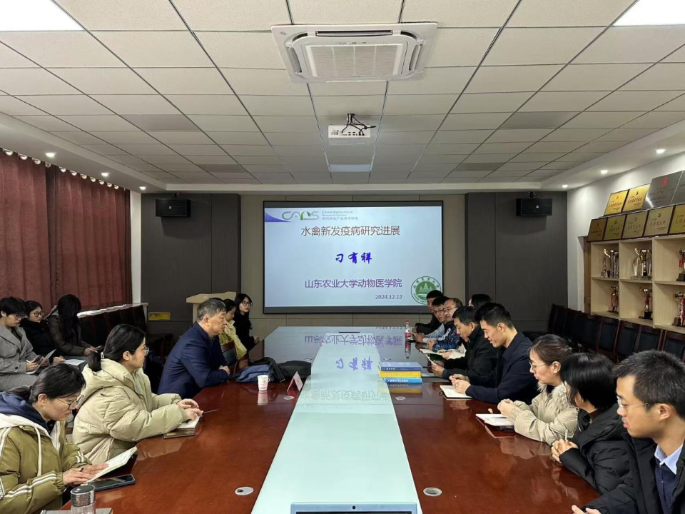 2024年12月12日,伟德victor1946邀请山东农业大学刁有祥教授来校作报告,报告题目为“水禽新发疫病研究进展”,报告会由韩先杰副经理主持,公司60余名师生参加。