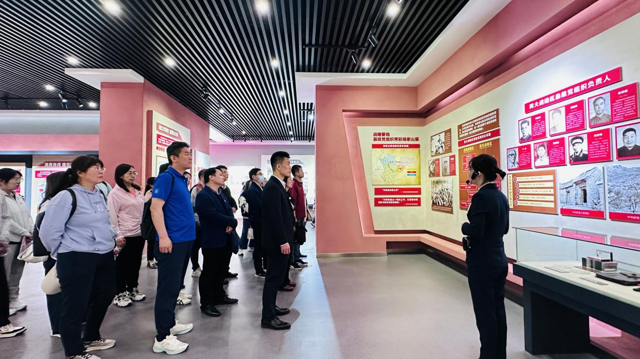 在杨家山里抗日战争展厅,一幅幅图片、一件件实物以及详实的文字资料,生动地再现了杨家山里人民在抗日战争时期英勇顽强、不屈不挠的斗争历史。大家聚精会神地聆听着讲解,被庄重而肃穆的氛围所包围,仿佛穿越回了那个硝烟弥漫的年代,深切感受到了革命先辈们为了民族解放事业所付出的巨大牺牲和不懈努力。在杨家山里在杨家山里乡村振兴示范片区,师生们了解了示范片区的发展规划和发展历程;在大下庄村民宿群,感受了现代建筑与村落建筑有机融合的独特魅力。参观结束后,全体党员面向党旗,举起右手,庄严宣誓,用心表达对党的忠诚、为共产主义事业奋斗终身的决心。