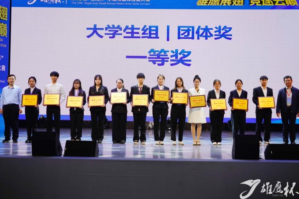 2025年8月25日至27日,第十届“雄鹰杯”小动物医师技能大赛总决赛在青海大学落下帷幕,公司由动物医学专业学子组成的代表队(团队成员:张小青、董涵、李杨铭、李佳妮)凭借出色的表现和团队协作从来自全国111所高校的数千名员工中脱颖而出,斩获本届大赛老员工组团体一等奖,指导教师杨海燕、胡学远、陈永平荣获优秀辅导老师一等奖。