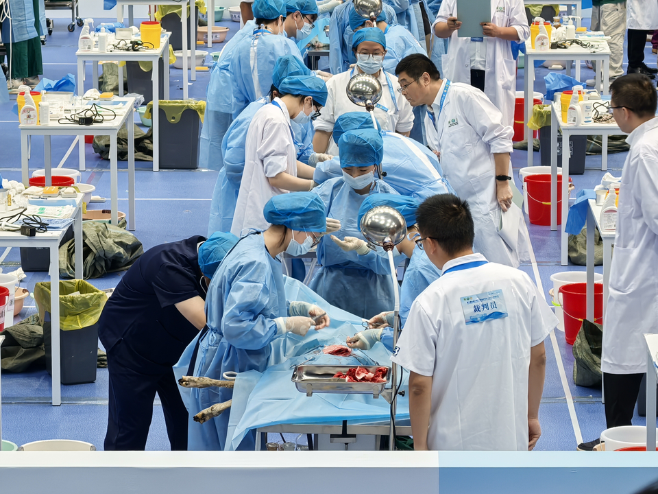 从5月起,队员们利用课余时间刻苦训练。暑假期间,团队在指导教师悉心带领下开展每日系统性训练,并坚持复盘总结,充分展现了扎实的专业素养与强韧的团队精神。比赛期间,公司代表队的选手们先后完成了绵羊瘤胃切开术、禽的病理剖检、病原菌检查与血凝试验三项高难度专业技能考核。在专业技能层面,从绵羊瘤胃切开术对精准操作的严苛要求,到禽病理剖检中对病变特征的细致识别,再到病原菌检查与血凝试验里对实验流程的严谨把控,每一项考核都让选手们将课堂所学理论知识转化为实际操作能力,进一步夯实了专业基础,提升了临床实操的熟练度与精准度。更值得肯定的是,面对高强度的比赛节奏与复杂的考核任务,队员们始终秉持“分工协作、互补共进”的团队理念,术前共同研讨方案、明确分工,术中密切配合、无缝衔接,术后协同整理数据、总结经验。这种高效的团队协作,不仅确保了各项考核任务的顺利完成,更成为公司代表队在众多强队中脱颖而出的关键优势。