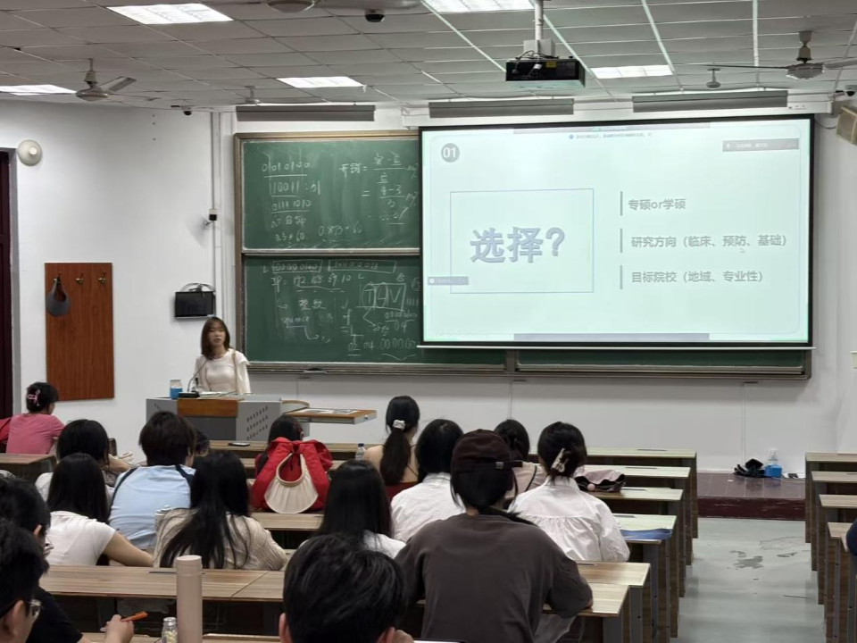 公司精心安排四位在考研、考公领域表现突出的2025届毕业生代表担任主讲人,围绕升学就业核心环节展开分享。动医2001班杨金茂结合考公上岸畜牧发展促进中心的实践,提出“岗位精准匹配模型”,强调以专业能力、职业兴趣、发展规划为坐标锚定报考目标;动医2002班周腾以410分高分考入吉大的经验,分享“知识体系建构法”,详解如何通过真题解构、学科联动提升备考效能;动医2003班李梁子涵以368分考入吉林大学为例,解析“院校分层定位法”,梳理出“高热院校、实力院校、985院校”三类院校特征,为考生提供差异化选择路径;动医2005班李昕融同学结合383分考取上海兽医研究所的经历,系统解读考研择校的“三维评估模型”,从专业排名、团队力量、招生政策等维度指导科学决策。