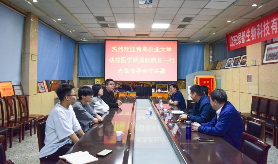 抵达山东绿都生物科技有限公司后,周顺经理一行在公司相关人员陪同下,首先参观了公司产品展厅。在参观过程中,周顺经理详细询问了公司生物制品、中兽药和消毒药的研发历程、技术优势以及市场应用情况,结合公司的科研方向与人才培养需求,提出诸多建设性意见。他强调,公司一直致力于培养理论与实践并重的高素质动医专业人才,鼓励员工将课堂所学知识运用到实际工作中,在实习中积累经验、提升能力。同时,他表示公司将进一步加强与企业的沟通协作,为企业输送更多优秀人才,也希望借助企业的资源优势,推动公司教学科研工作发展,实现互利共赢。