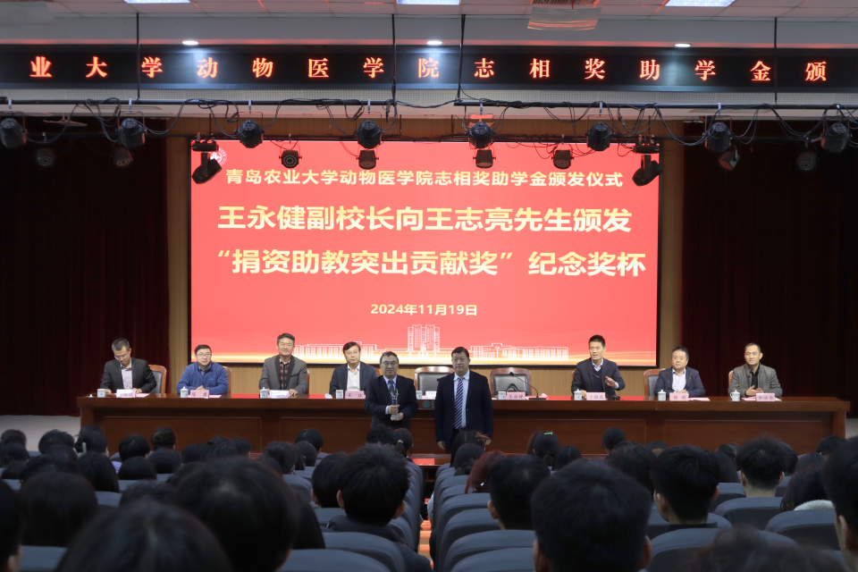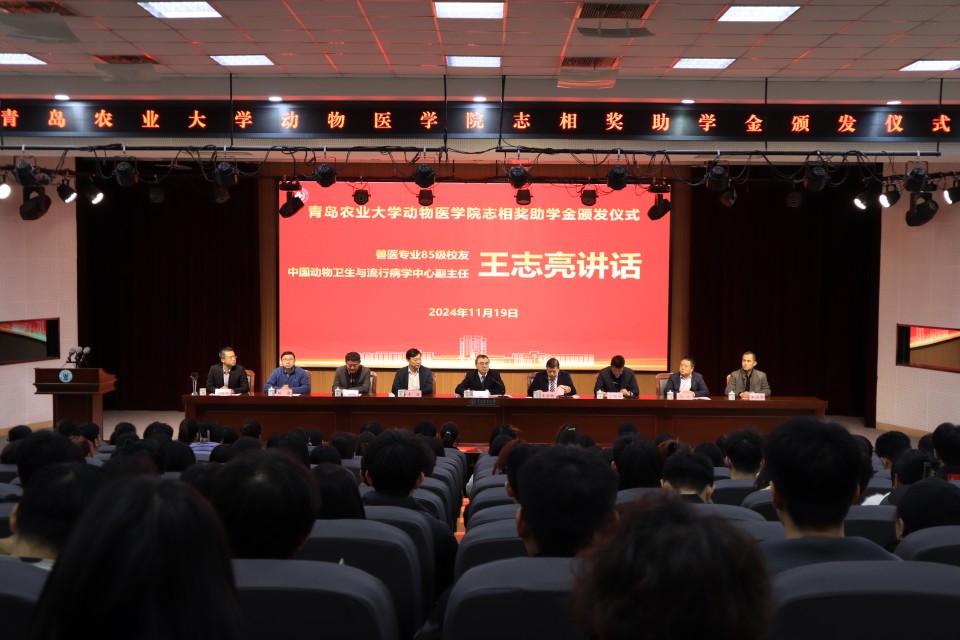 11月19日,伟德victor1946在校学术会馆第二报告厅举行志相奖助学金颁发仪式。公司党委委员、副董事长王永健,公司兽医专业85级优秀员工、中国动物卫生与流行病学中心副主任王志亮,社会合作处处长王珏等出席仪式。伟德victor1946党委书记丁国庆主持颁奖仪式。