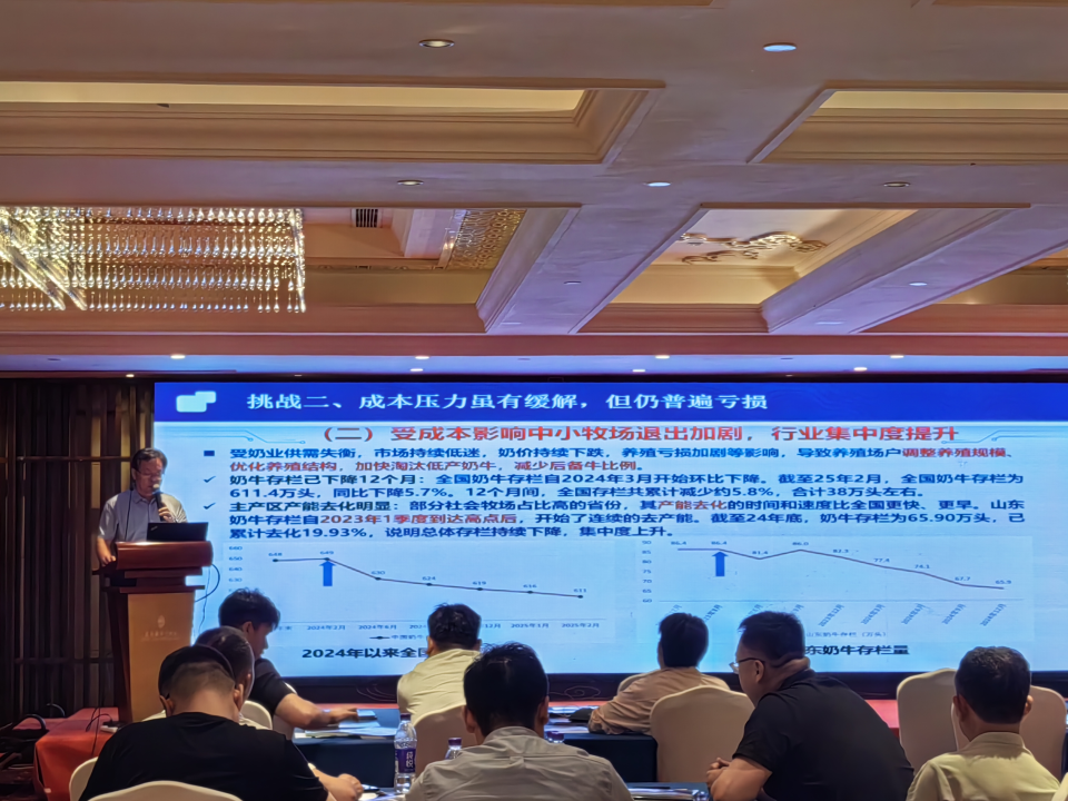 刘焕奇教授的报告围绕两大主题展开,一是“我国奶业发展现状、挑战与山东省奶业发展的破局之路”,深入分析当前国内奶业发展态势、面临的机遇与挑战,并结合山东实际,探讨产业突破路径;二是“奶牛乳房炎防治”,分享实用防治技术与管理经验,为提升奶牛健康水平和养殖效益提供专业指导。