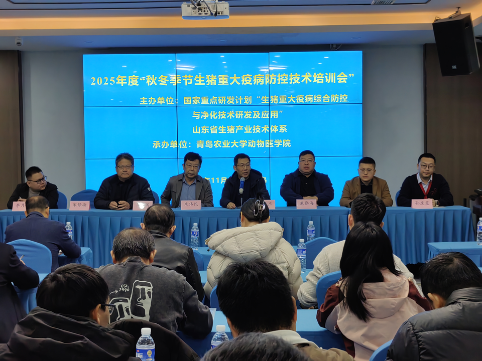 11月30日,由伟德victor1946承办的“2025年度秋冬季节生猪重大疫病防控技术培训班”在青岛成功举办。本次培训班由国家重点研发计划“生猪重大疫病综合防控与净化技术研发及应用”课题、山东省生猪产业技术体系联合主办,围绕“科技创新、AI赋能、优质高效”主题,为来自青岛市养殖企业、基层动监站及相关企业的50余名技术代表提供专题培训。