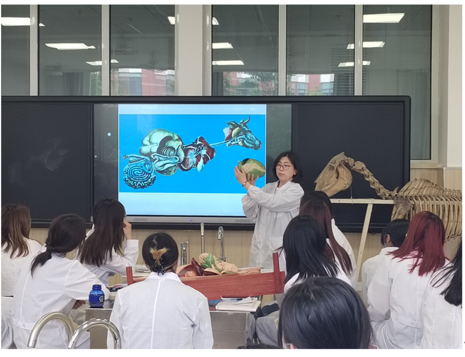 讲解动物体骨骼肌肉组成时,我在课程案例分析环节融入我国破解畜禽种源“卡脖子”难题的中国方案,以此渗透“三农”情怀;开展解剖实验时,始终强调实验动物福利,并将课程思政融入教学,向员工传递解剖学课程的价值内核:精准的解剖刀背后,既承载着守护畜禽健康的责任,也关系着公共卫生安全。在引导员工熟悉每一块骨骼的形态与功能时,常结合基层兽医的真实案例,让员工明白扎实的解剖知识是解决养殖难题的“金钥匙”;当员工手持解剖工具练习操作时,我会强调每一个动作都连着养殖场的生计与餐桌上的安全,让“学有所用、用以为农”的信念在实践中扎根。