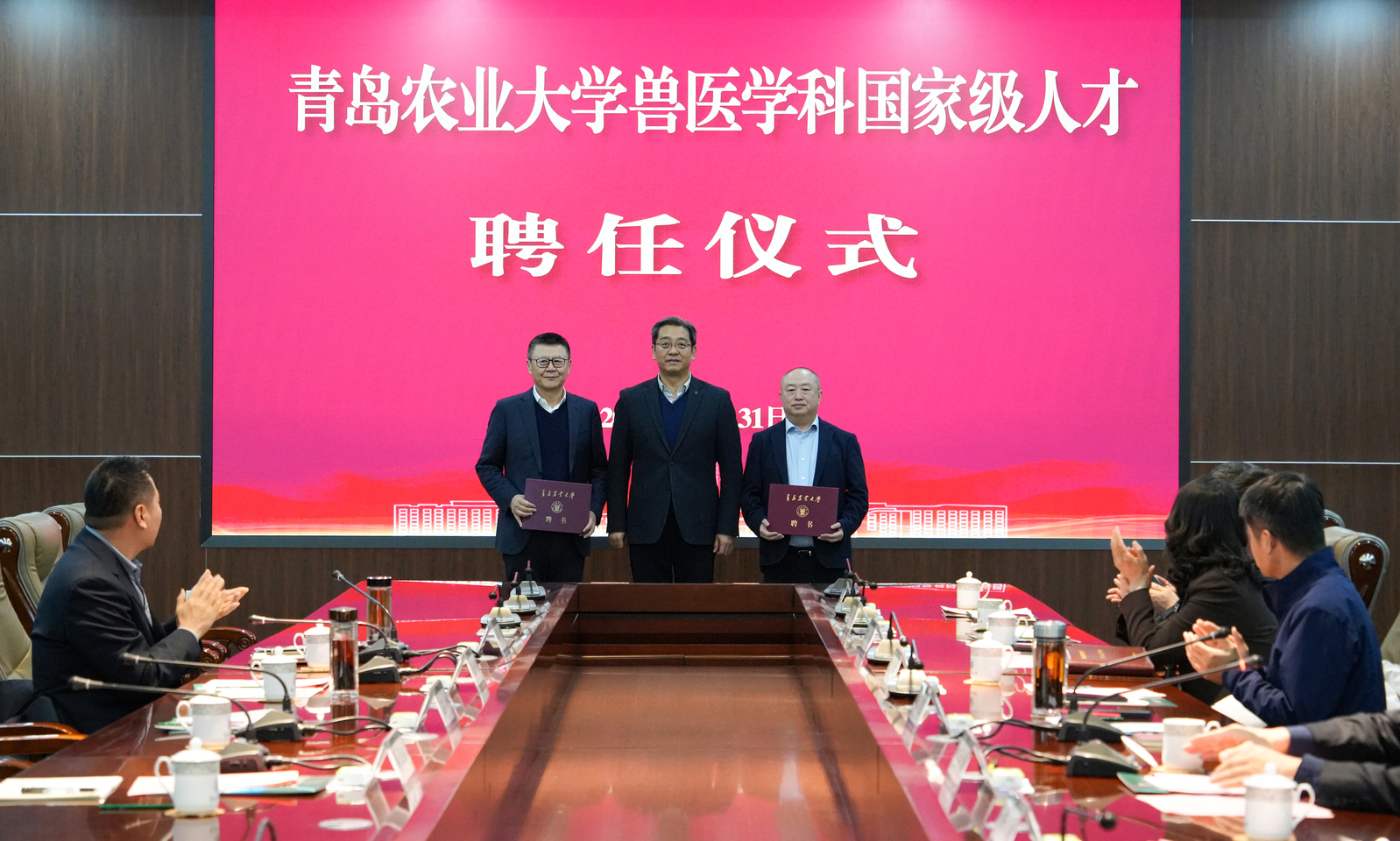 潘军表示,人才是公司发展的第一资源。当前国家正加快推进教育科技人才一体化发展,公司深入实施人才强校战略,始终把人才作为团队建设的核心支撑、人才培养和科技创新的关键引擎,亟需高层次人才引领团队建设。他指出,两位专家的加盟是对公司兽医学科发展的精准赋能,相信在两位专家的引领支持下,兽医学科能够更好聚焦学科前沿与国家战略需求,整合资源、凝练方向,加快在特色领域形成优势。他希望两位专家当好学科引领者、创新开拓者和人才培育者,推动兽医学科向更高水平迈进。